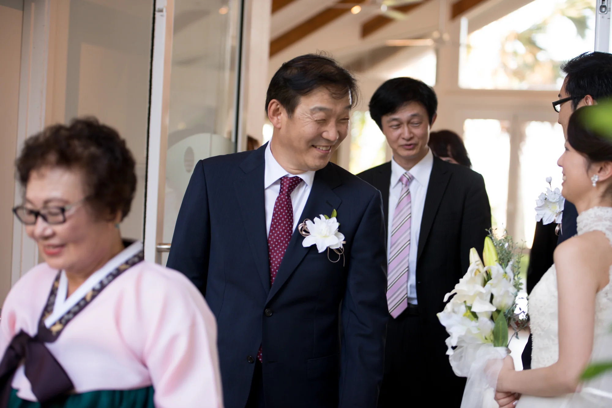 韓国語は全くご存知なく、英語は少ししかわからない新婦様のお父様。