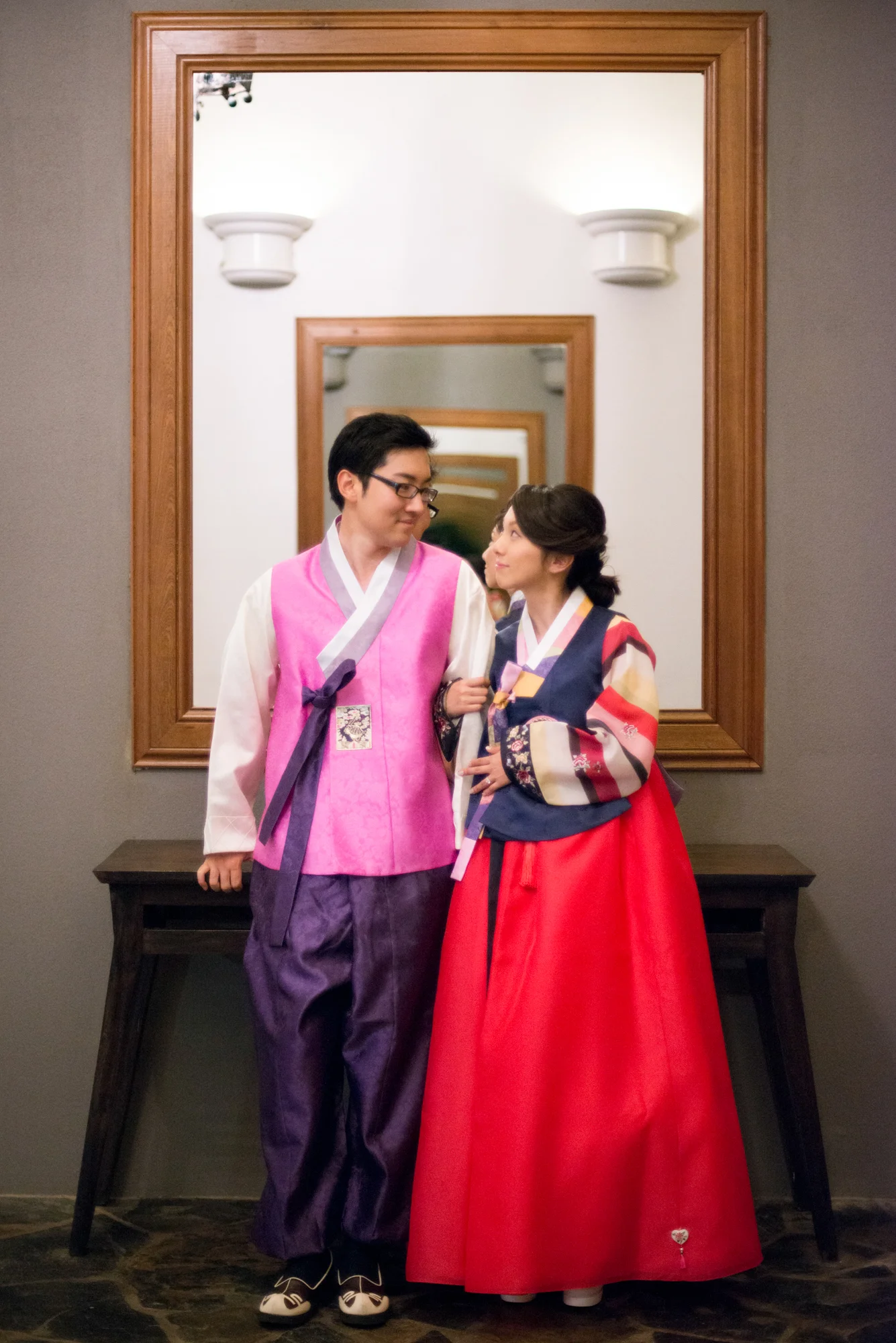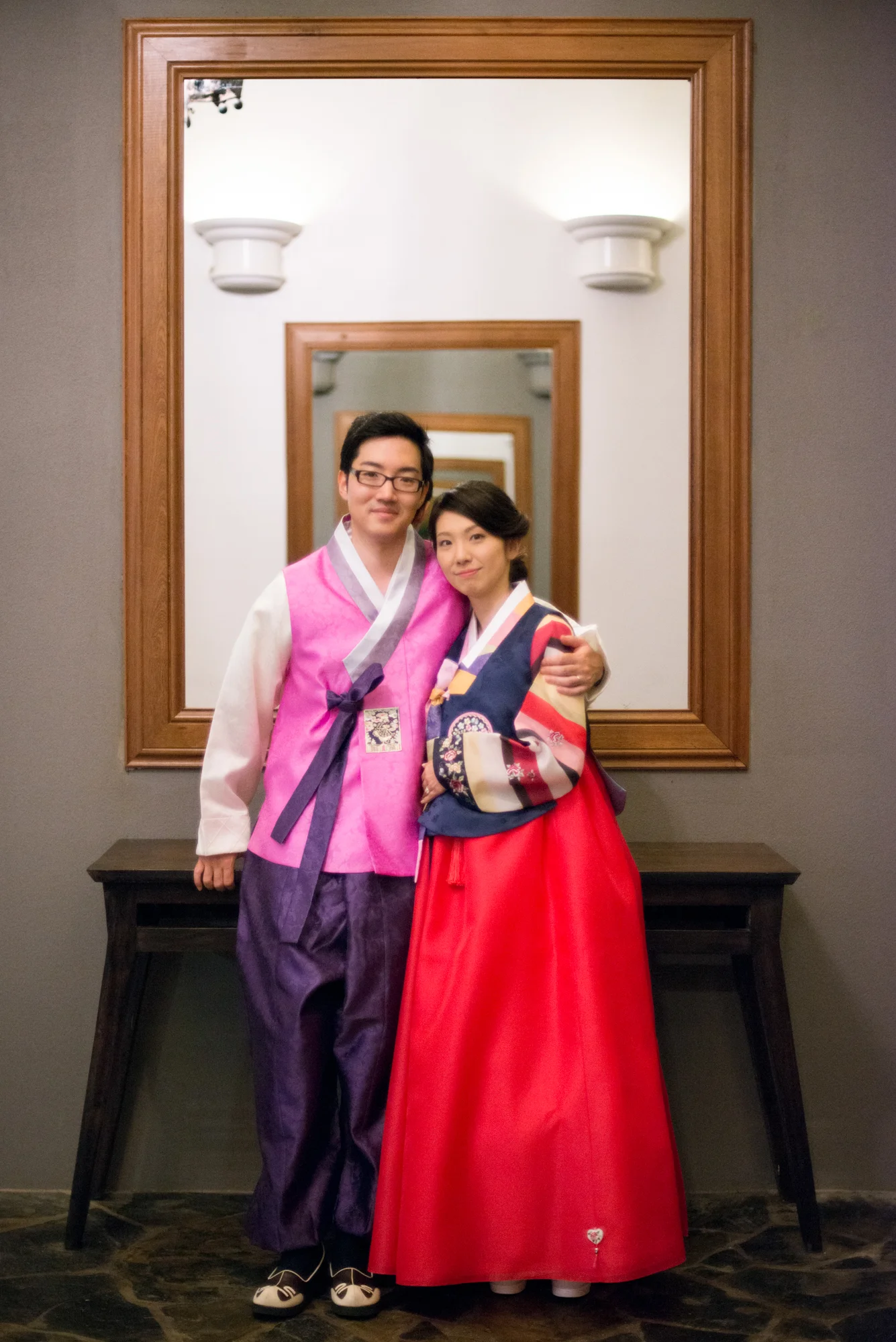こちらのチマチョゴリは、新郎様のご両親が、韓国に100%カスタムオーダーをされて仕立て上げられたものとのこと。