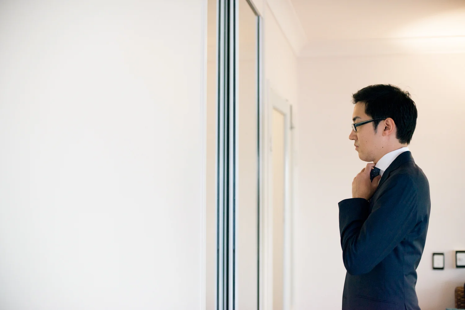 先にお食事が終わった新郎様から、お着替え開始。
