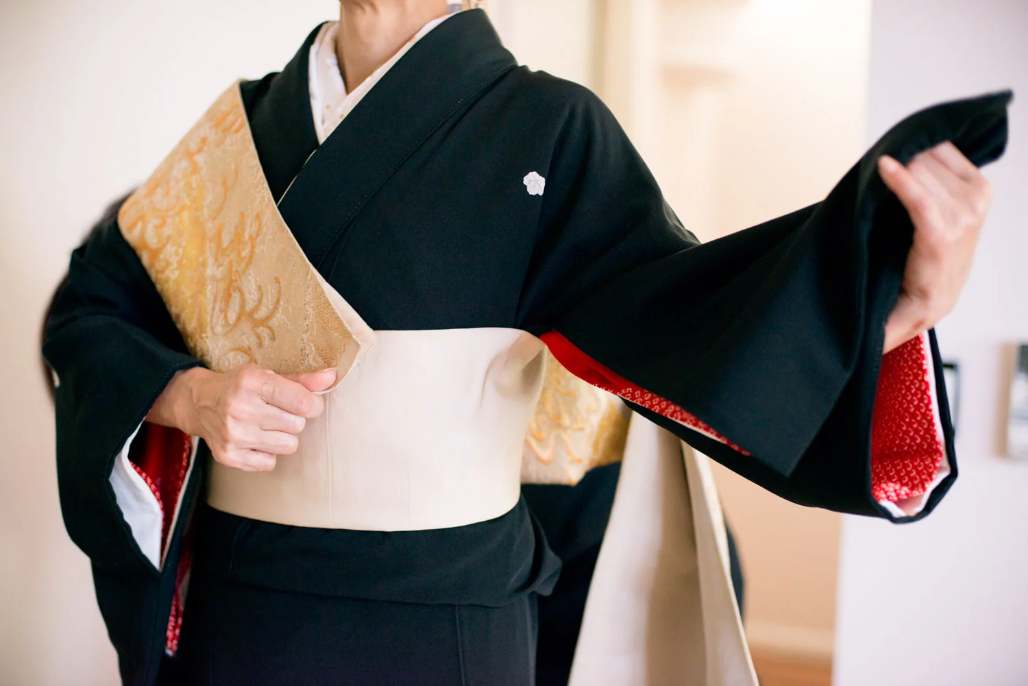 娘様が海外で挙式をされるからこそ、「日本の伝統と心は忘れずに持っていきたい」、と日本から黒留袖をご持参されました。