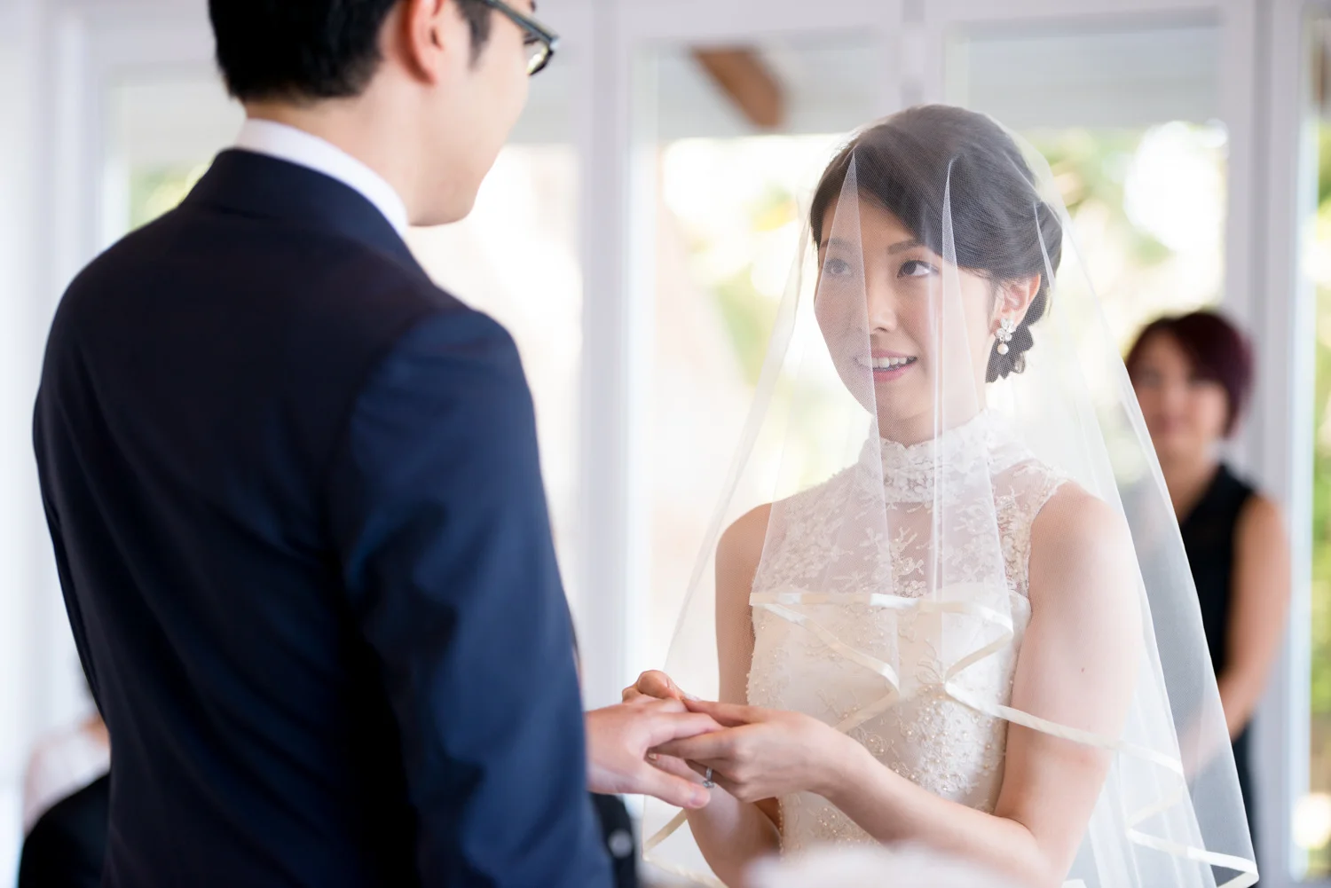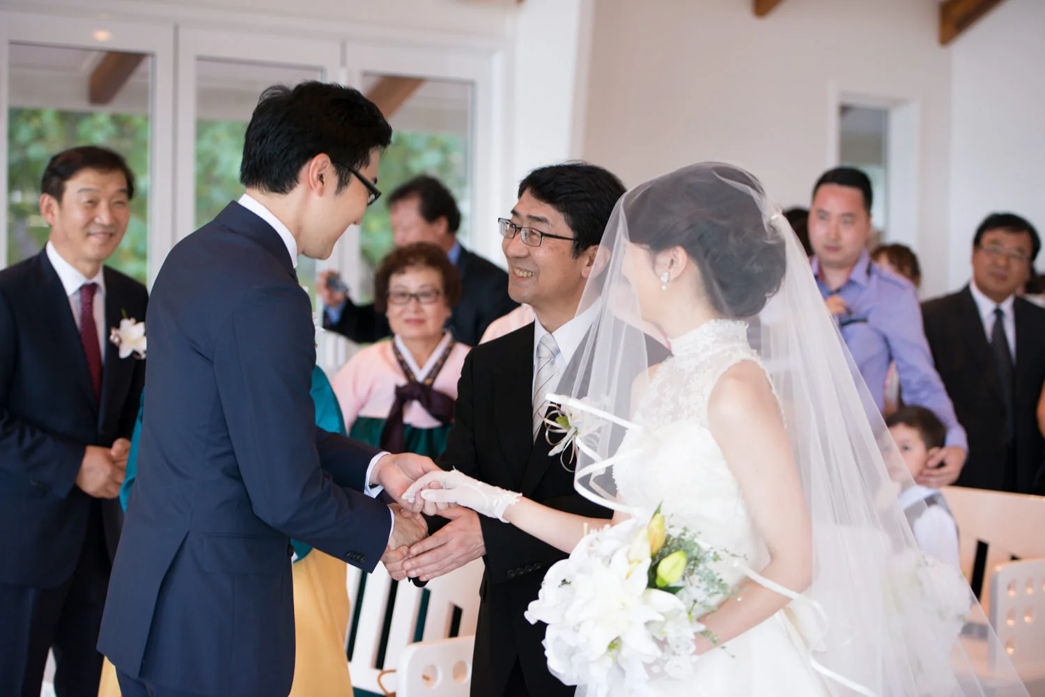 新婦様の手を、しっかりと新郎様に渡して。