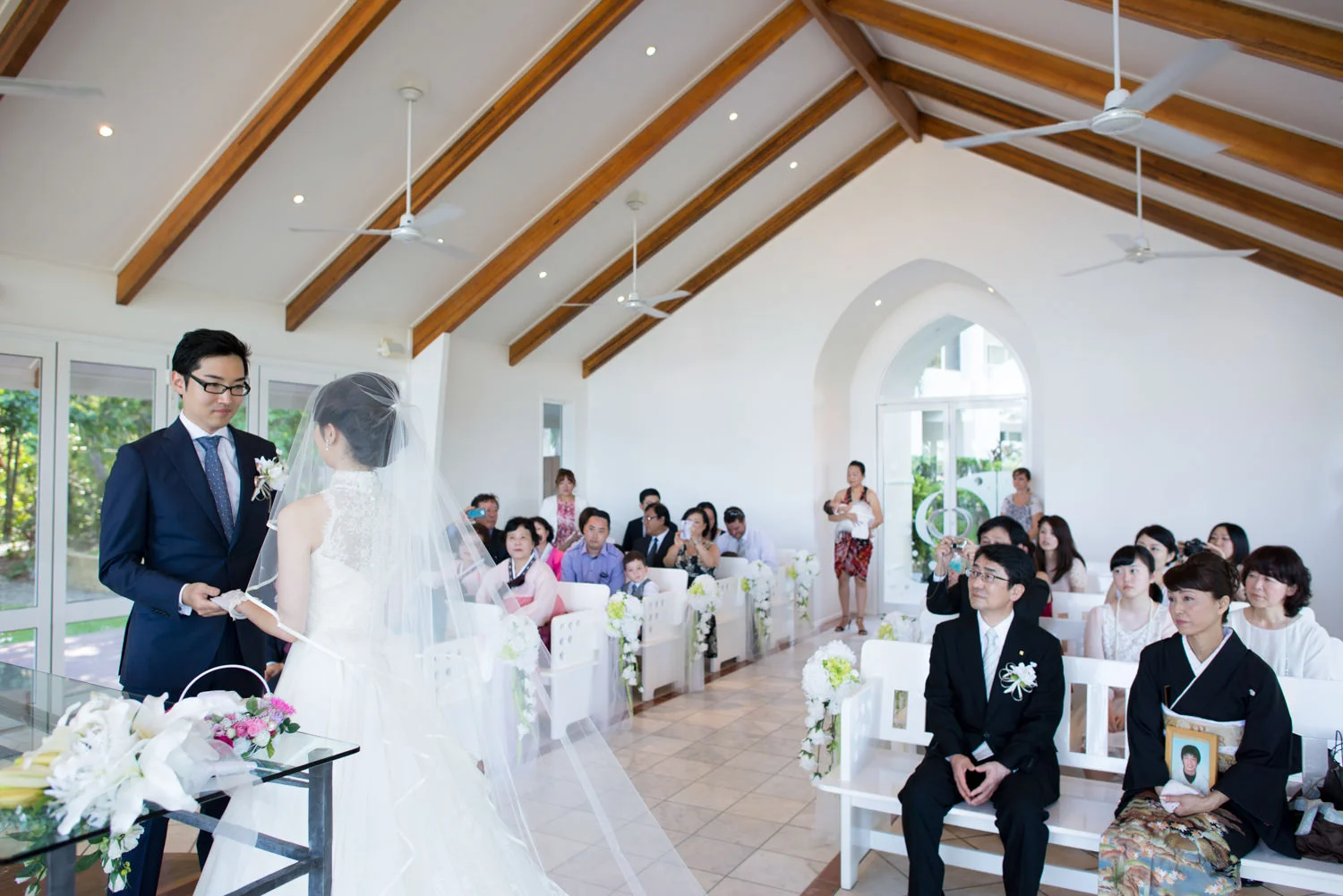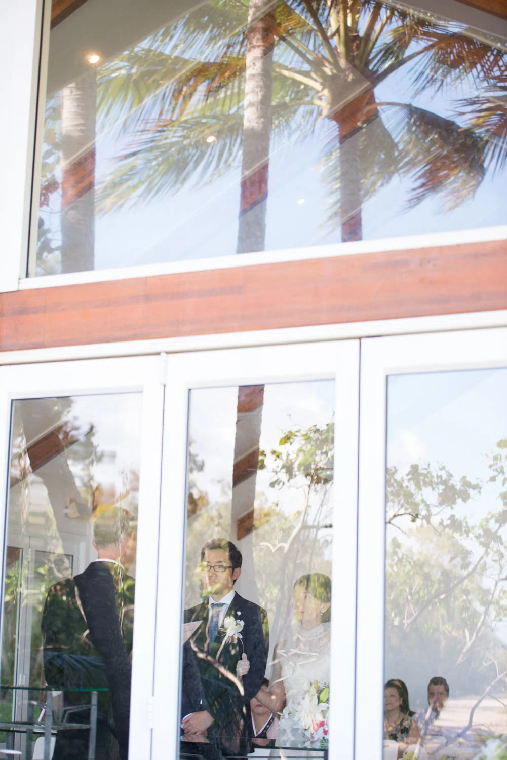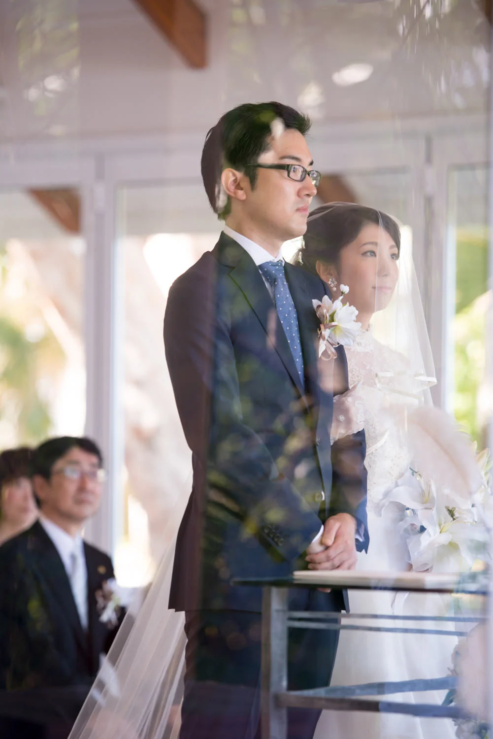 式の最中、フォトグラファーは静かにチャペルの外まで行って、窓越しに、「外から見える結婚式の様子」まで撮影します。
