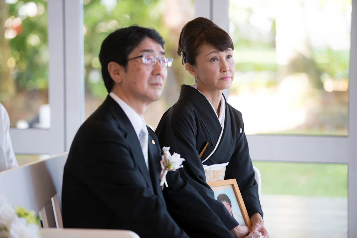 式の間中、常に優しい笑顔を浮かべながら、新郎新婦様を見守られる、新郎様のご両親の横顔。