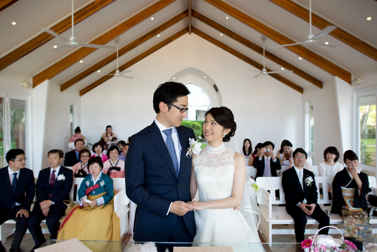 エリートで知的な雰囲気の漂う、韓国系オージーの新郎様と、妖精のように華奢で、笑顔がとっても綺麗な日本人新婦様の、